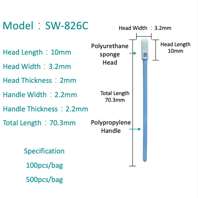 Sapu kapas pembersihan tanpa habuk direka khas khas yang diperbuat daripada bahan berkualiti tinggi yang meminimumkan pembebasan zarah dan habuk semasa penggunaan. Swab ini adalah alat penting dalam pelbagai industri, terutamanya untuk membersihkan komponen elektronik sensitif.